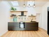 kuchyně s jídelním koutem, která je od obývací části jemně oddělena,