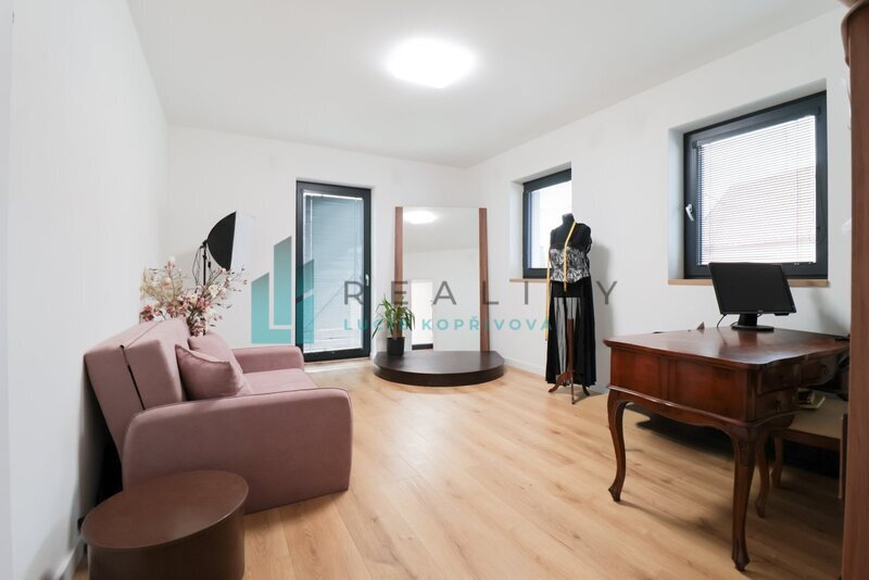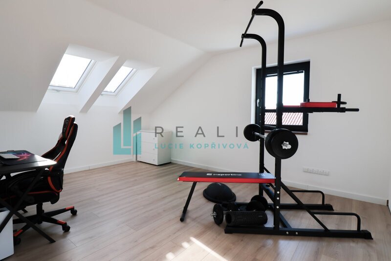 Dále pak dům nabízí prostory pracovny, dětský pokoj, ložnici, šatnu,
